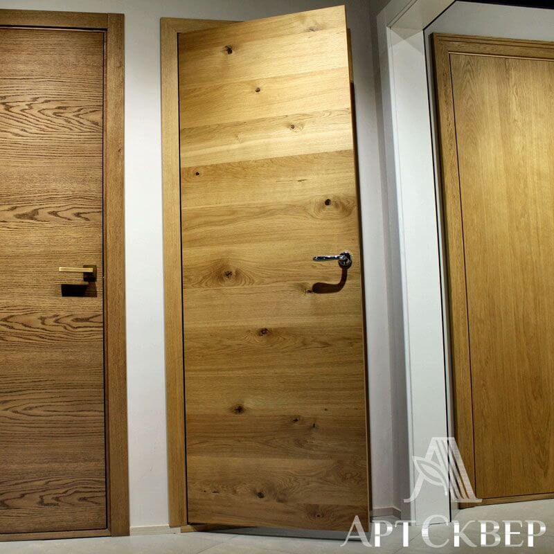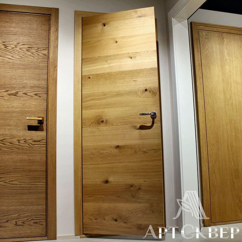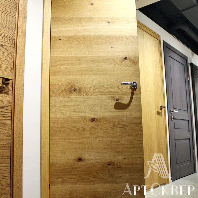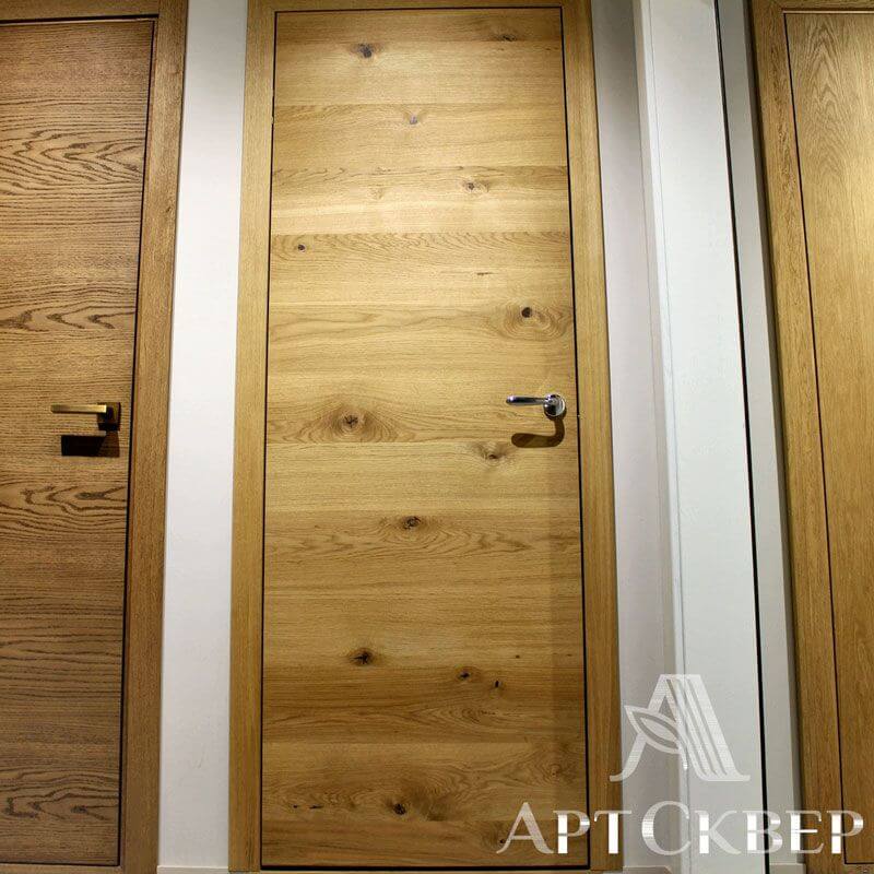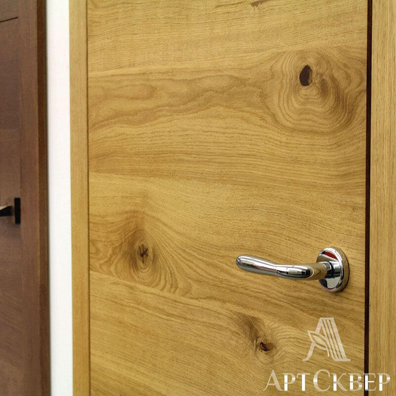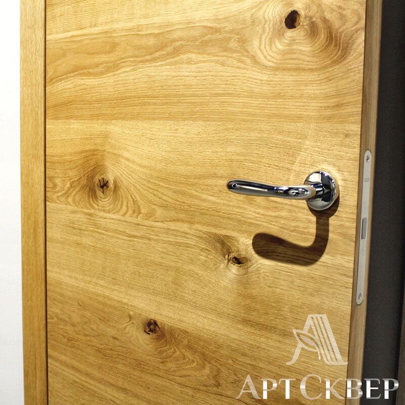 Модель из серии Hi-tech. Эта модель востребована в западно-европейских странах, т.к. зарубежный клиент хочет видеть что у него натуральная деревянная дверь. Особенность этой модели в том, что каждая дубовая ламель подбирается с сучком, который специально обрабатывается и выглядит завершенным. Благодаря этим сучкам ощущение что дверь из одного цельного куска дерева.