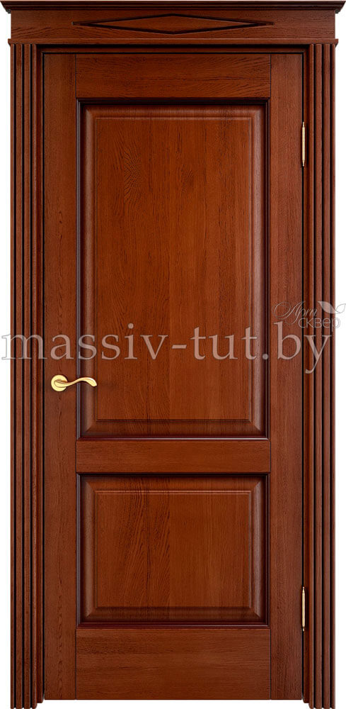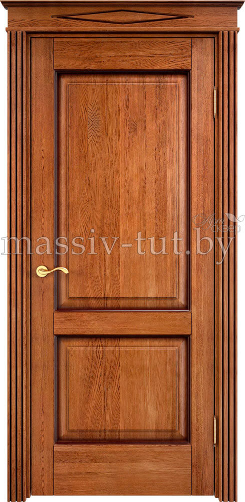Каждая модель может быть изготовлена в разных вариантах отделки. Конструкция двери филенчатая. Каркас, все детали двери и комплектующих выполнены из 100% массива дуба. На поверхности дверного полотна отсутствуют сучки и различные дефектные места. Рисунок деталей оптимально подобран. Все детали конструкции склеены двухкомпонентным карбамидным клеем шведской фирмы CASCO Products. Все детали сверху покрываются трехслойным лаковым покрытием. Коробка прямоугольная с уплотнителем. Наличники: плоские, фрезерованные и колонны.