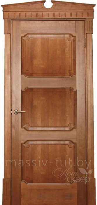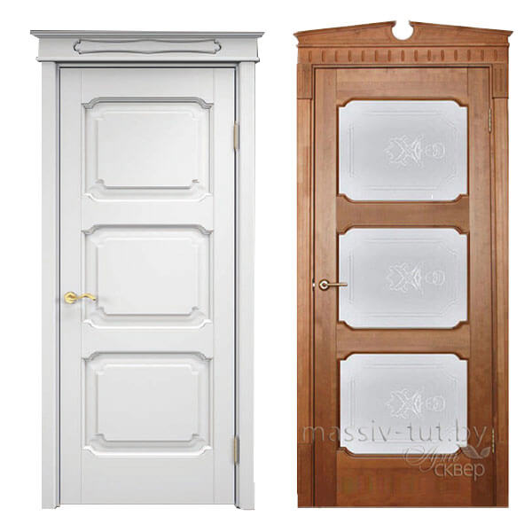 Каждая модель может быть изготовлена в разных вариантах отделки. Конструкция двери филенчатая. Каркас, все детали двери и комплектующих выполнены из 100% массива дуба. На поверхности дверного полотна отсутствуют сучки и различные дефектные места. Рисунок деталей оптимально подобран. Все детали конструкции склеены двухкомпонентным карбамидным клеем шведской фирмы CASCO Products. Все детали сверху покрываются трехслойным лаковым покрытием. Коробка прямоугольная с уплотнителем. Наличники: плоские, фрезерованные и колонны.