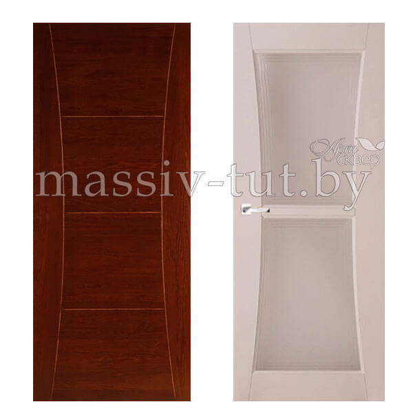Каждая модель двери может быть изготовлена в разных вариантах отделки. Конструкция двери филенчатая. Каркас, все детали двери и комплектующие выполнены из 100% массива ольхи. На поверхности дверного полотна отсутствуют сучки и различные дефектные места. Рисунок деталей оптимально подобран. Все детали конструкции двери склеены двухкомпонентным карбамидным клеем шведской фирмы CASCO Products. Все детали сверху покрываются трехслойным лаковым покрытием. Коробка прямоугольная с уплотнителем. 15 вариантов наличников.