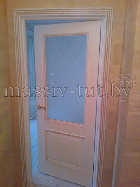 Каждая модель двери может быть изготовлена в разных вариантах отделки. Конструкция двери филенчатая. Каркас, все детали двери и комплектующие выполнены из 100% массива ольхи. На поверхности дверного полотна отсутствуют сучки и различные дефектные места. Рисунок деталей оптимально подобран. Все детали конструкции двери склеены двухкомпонентным карбамидным клеем шведской фирмы CASCO Products. Все детали сверху покрываются трехслойным лаковым покрытием. Коробка прямоугольная с уплотнителем. Наличники (плоские, фрезерованные и колонны).