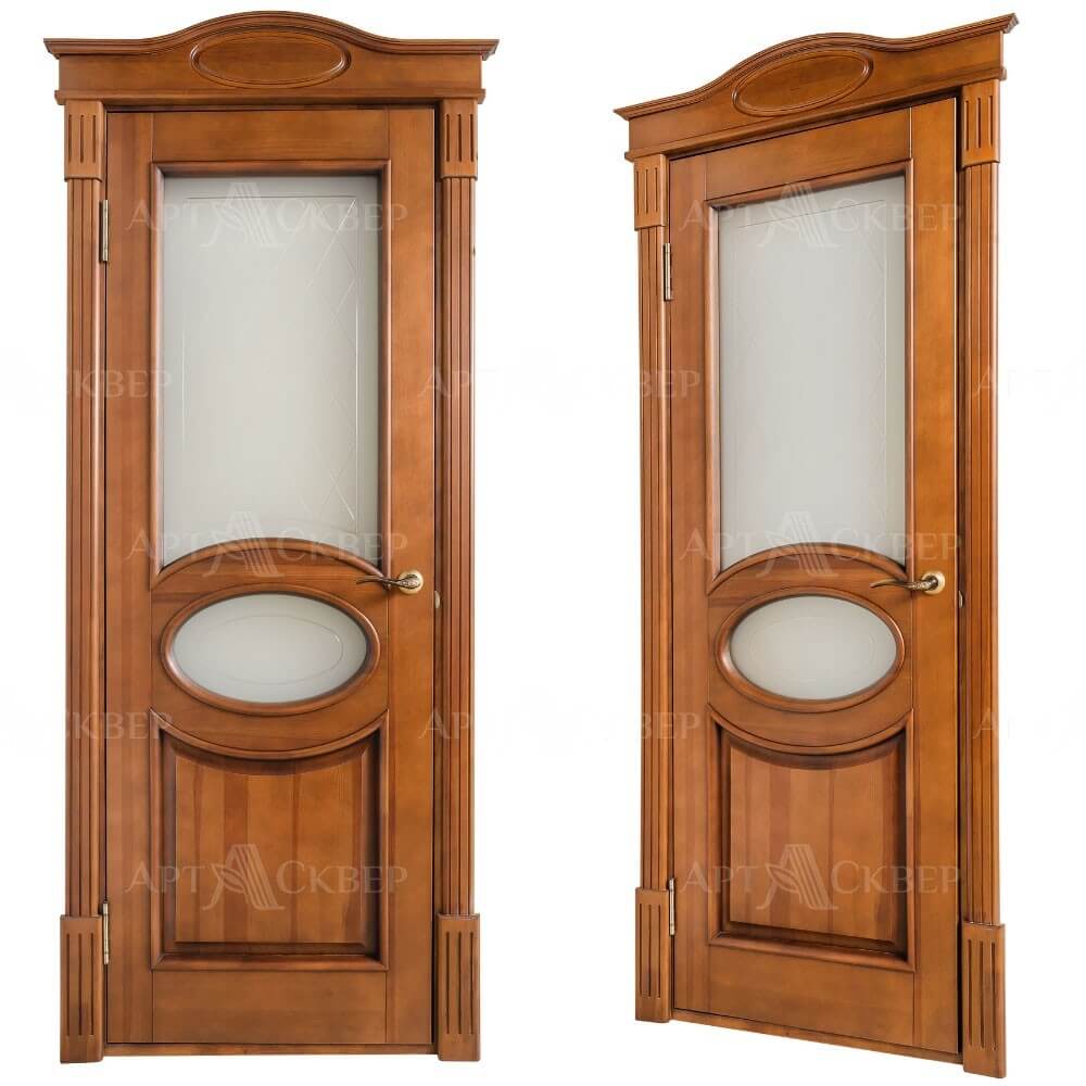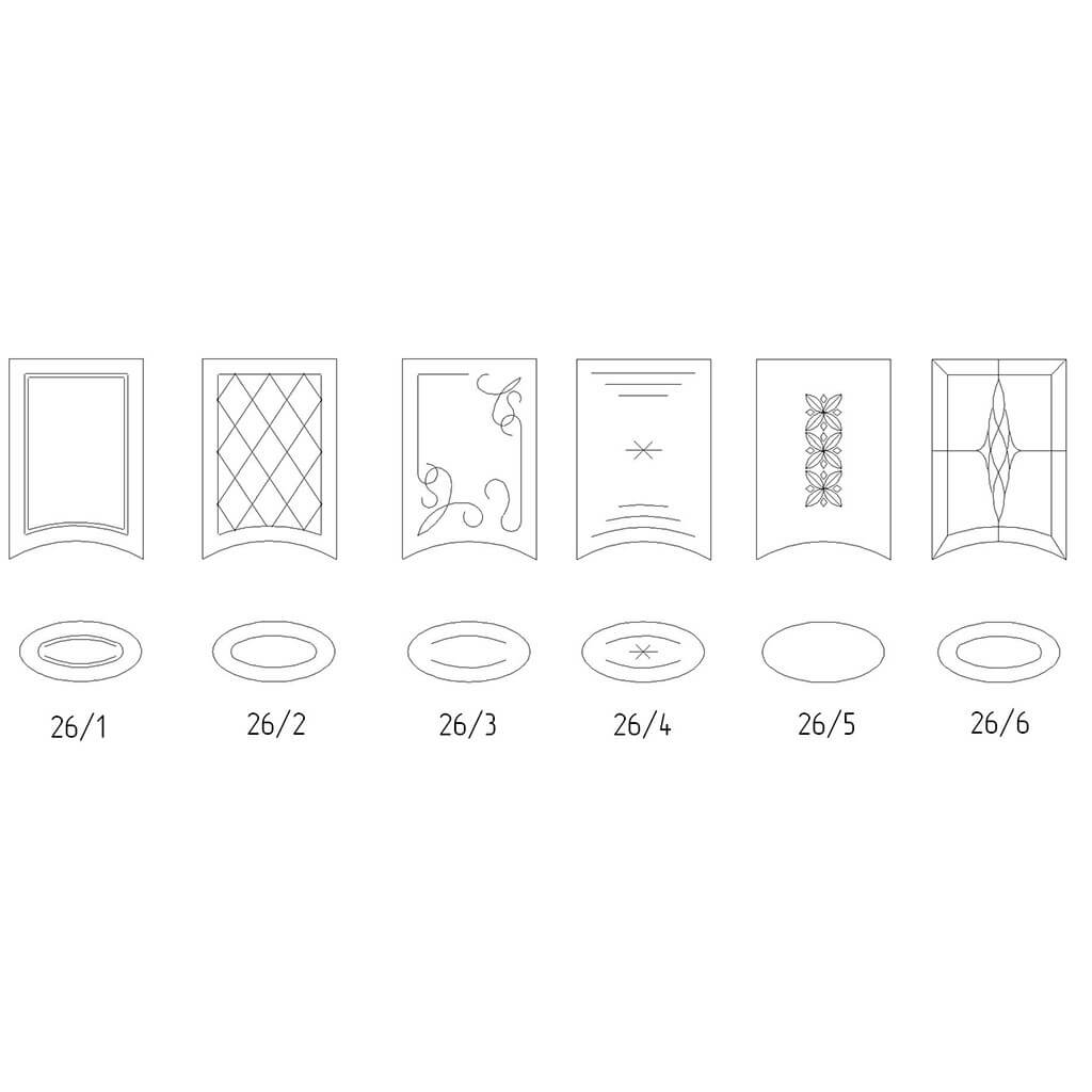 Межкомнатная дверь в классическом стиле. Особенностью модели является узор в виде овала на полотне. Полотно может быть как глухим, так и застеклённым. Возможны различные комбинации, благодаря которым ваша будущая дверь приобретёт особую индивидуальность.