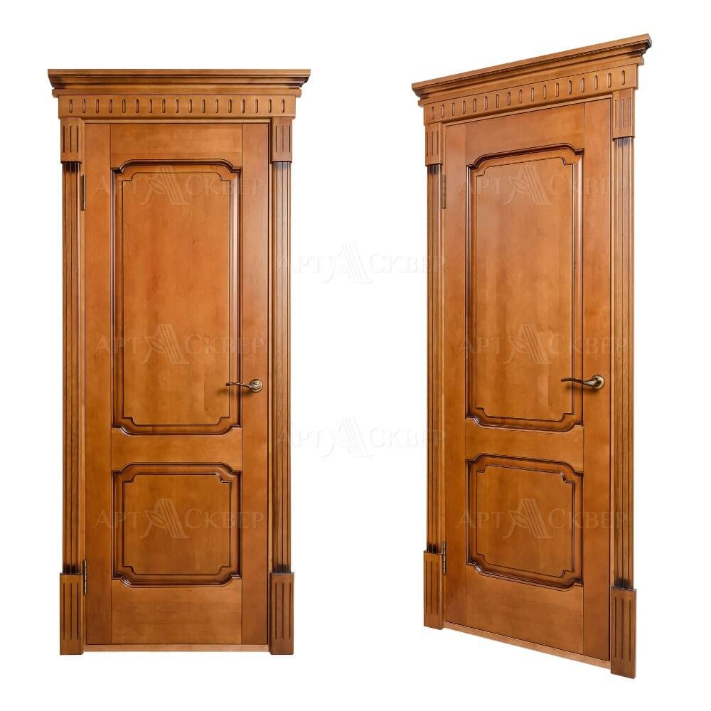Каждая модель двери может быть изготовлена в разных вариантах отделки. Конструкция двери филенчатая. Каркас, все детали двери и комплектующие выполнены из 100% массива ольхи. На поверхности дверного полотна отсутствуют сучки и различные дефектные места. Рисунок деталей оптимально подобран. Все детали конструкции двери склеены двухкомпонентным карбамидным клеем шведской фирмы CASCO Products. Все детали сверху покрываются трехслойным лаковым покрытием. Коробка прямоугольная с уплотнителем. 15 вариантов наличников.
