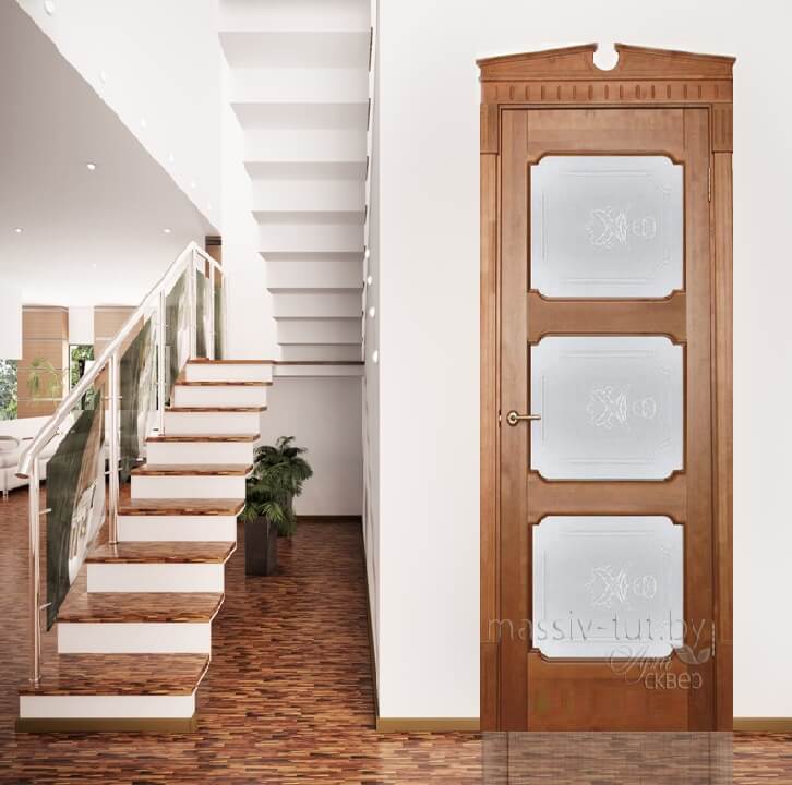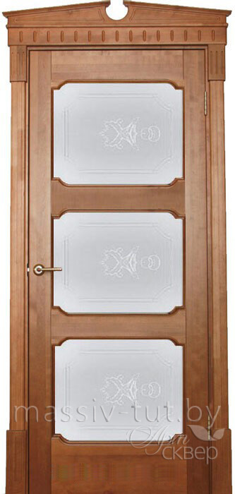 Каждая модель двери может быть изготовлена в разных вариантах отделки. Конструкция двери филенчатая. Каркас, все детали двери и комплектующие выполнены из 100% массива ольхи. На поверхности дверного полотна отсутствуют сучки и различные дефектные места. Рисунок деталей оптимально подобран. Все детали конструкции двери склеены двухкомпонентным карбамидным клеем шведской фирмы CASCO Products. Все детали сверху покрываются трехслойным лаковым покрытием. Коробка прямоугольная с уплотнителем. 15 вариантов наличников. Филенчатая дверь из 100% клееного массива ольхи.