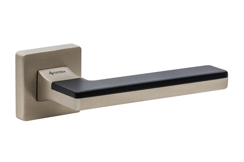 Ручки дверные SYSTEM LARISSA SQ NBMX/NBMX/AL6 брашированный матовый никель/черный матовый