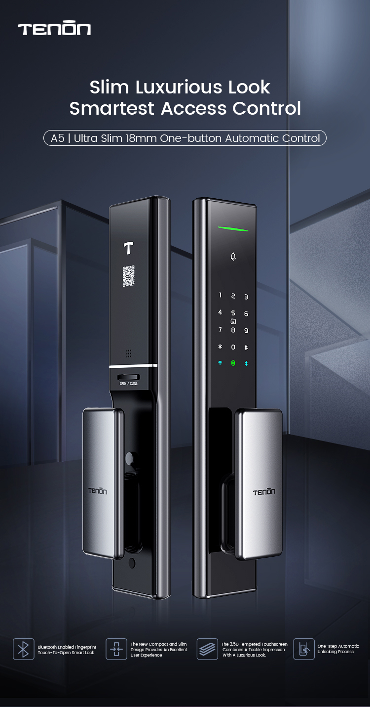 А5 легкий умный дверной замок, с ультратонкой панелью шириной 18,8 мм. Каждая деталь, линия и дуга взаимно дополняют друг друга. Проверка отпечатка пальца одним касанием: RF полупроводниковый отпечаток пальца на ручке может быстро проверить ваш отпечаток пальца. Защита паролем: вы можете добавить любое количество цифр до или после правильного пароля. Автоматическая блокировка: после разблокировки замок будет автоматически заблокирован через 30 сек.