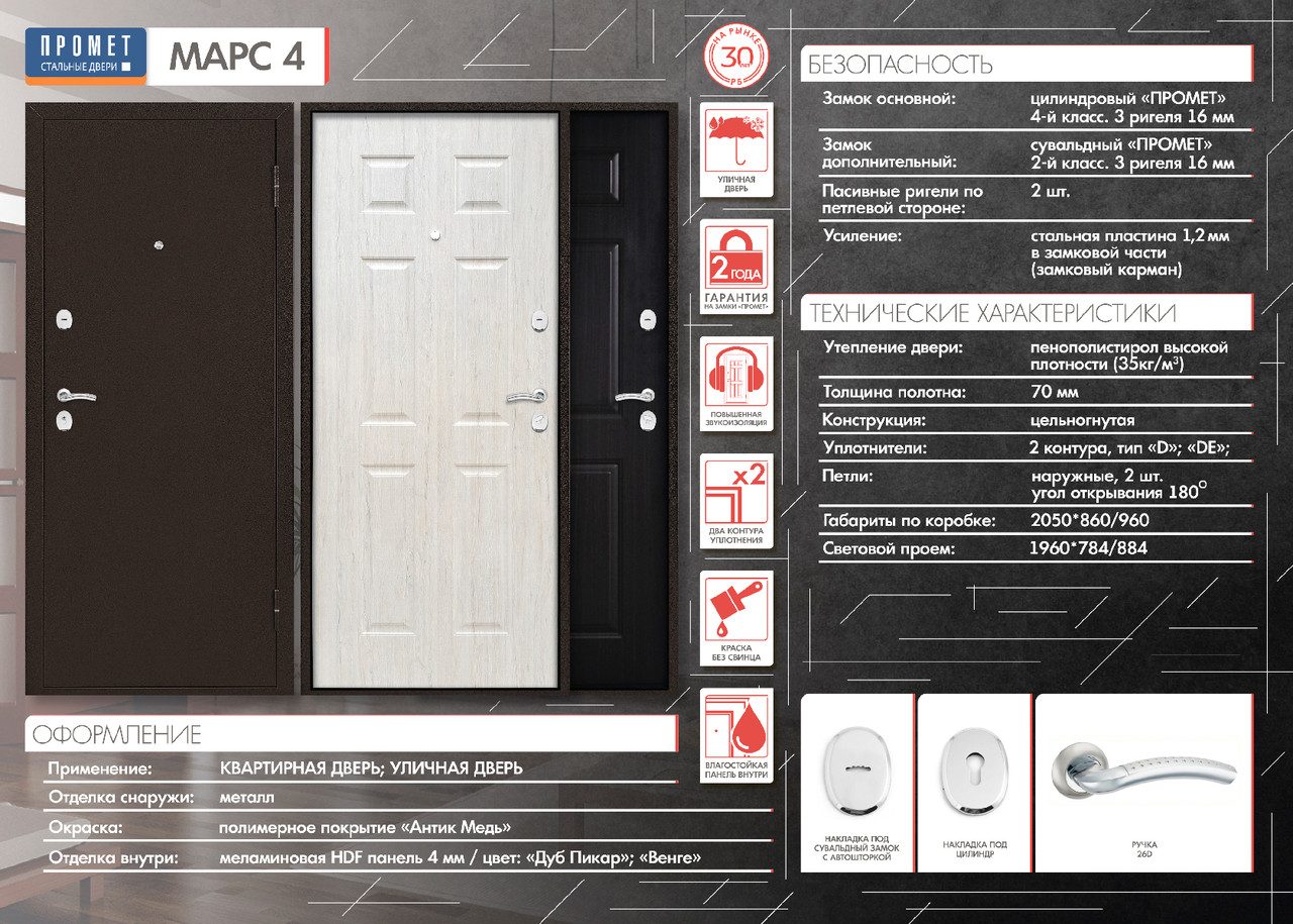 Верхний - сувальдный "ПРОМЕТ", 3 ригеля 16 мм, РФ (2-й класс взломостойкости)