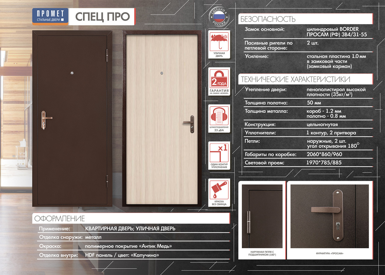 ПРОМЕТ "Спец ПРО" Капучино (2060х860 Левая) | Входная металлическая дверь