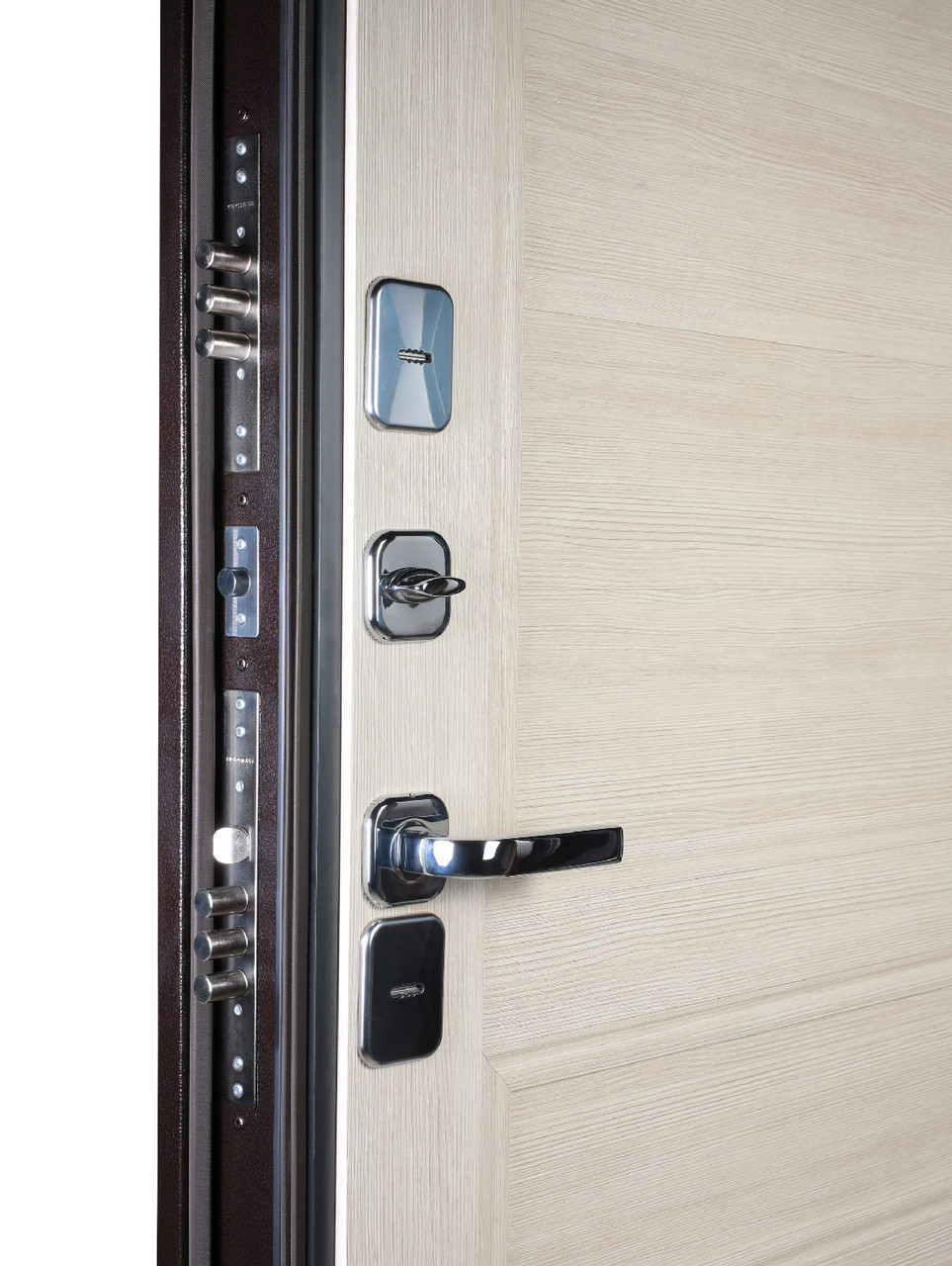 На двери «Винтер» установлены 2 надежных сувальдных замка лучшего российского производителя ГАРДИАН (гарантия 7 лет). Ключевые накладки оборудованы подпружиненными шторками, которые отсекают поток холодного воздуха. Для удобства пользования ключи от верхнего и нижнего замков имеют разную длину.