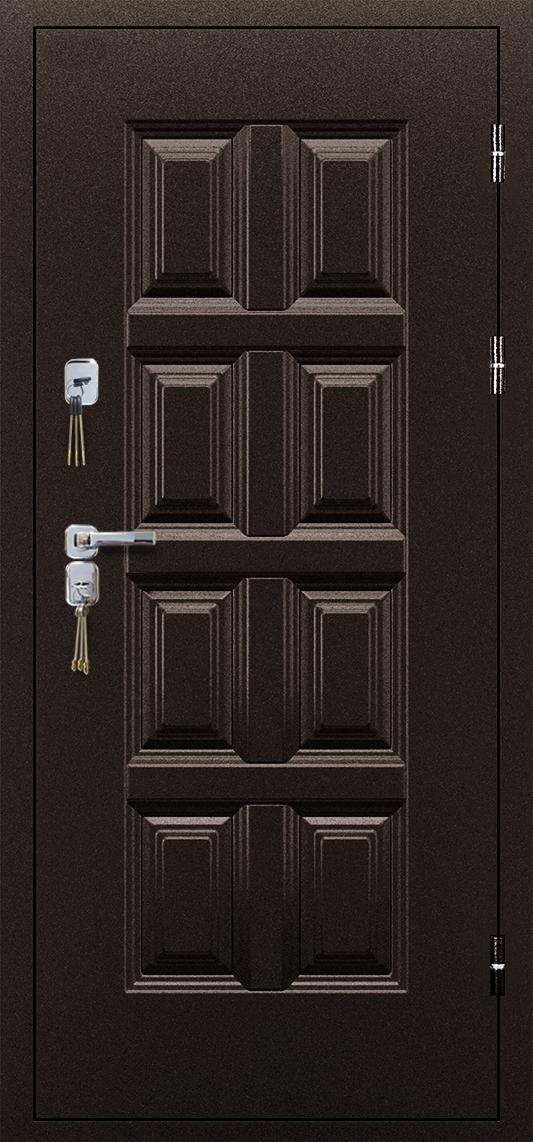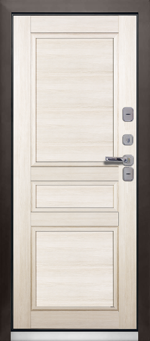 Дверь «ВИНТЕР» это оптимальное решение для уличной двери в коттедж. Она принадлежит к классу дверей «термо», имеющих повышенные характеристики по теплоизоляции и устойчивости к атмосферным явлениям. Усиленное цельногнутое полотно толщиной 100 мм с тепло изолирующим контуром из ПВХ пластика, двойной терморазрыв в коробе по технологии «лабиринт», 3 контура уплотнения, 2 надежных сувальдных замка высшего класса секретности, атмосферостойкое покрытие с цинковым грунтом, накладка на порог из нержавеющий стали и внутренняя 16 мм царговая панель в классическом дизайне обеспечат тепло и уют в вашем доме.